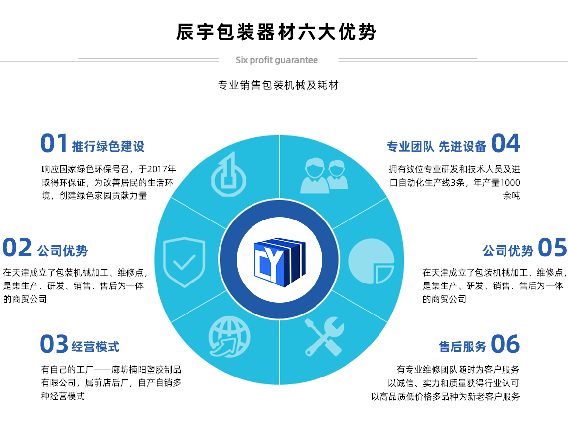 天津辰宇包裝器材有限公司原天津市辰宇商貿(mào)有限公司,位于天津市南開(kāi)區(qū)密云一支路新南馬路五金城二區(qū)33棟106號(hào),本公司主要經(jīng)營(yíng):打包帶,打包機(jī)系列,封箱機(jī)系列,纏繞機(jī)系列,拉伸膜,膠帶,尼龍繩,其他包裝耗材等產(chǎn)品 公司產(chǎn)品質(zhì)優(yōu)價(jià)廉,暢銷(xiāo)全國(guó)各大城市。同等質(zhì)量比價(jià)格,同等價(jià)格比質(zhì)量,我們確保質(zhì)量,價(jià)錢(qián)合理,交貨迅速及時(shí)。公司始終秉承“精益求精,鑄造品質(zhì)的典范”的經(jīng)營(yíng)理念,真誠(chéng)為廣大客戶提供真誠(chéng)的服務(wù)! 天津市辰宇包裝器材有限公司,感謝廣大新老客戶的鼎力支持,竭誠(chéng)歡迎社會(huì)各界朋友前來(lái)洽談業(yè)務(wù),愿真誠(chéng)合作攜手共創(chuàng)美好未來(lái)!